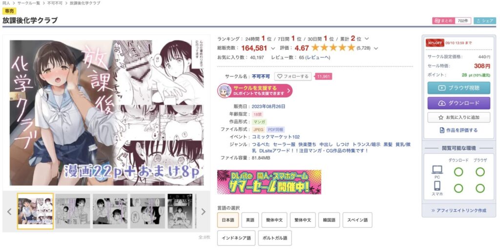 日付変わったらDMMブックスとかDLsiteとかの新着見るのが習慣なんだけどDLsiteのランキングにずっと放課後化学クラブがランクインし続けてるのですごいな~~と思う